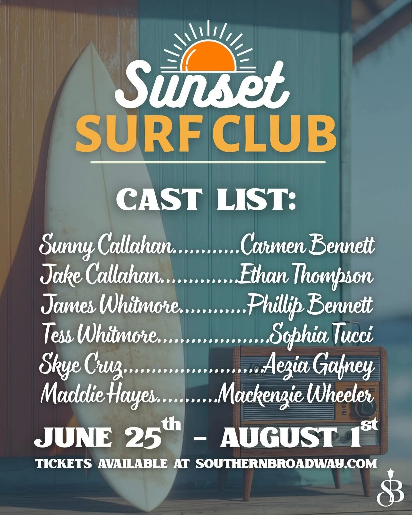 Speaking of which, we received the script yesterday and read through it. Please be sure and catch, “Sunset Surf Club” at Southern Broadway this summer June 25- August 1.