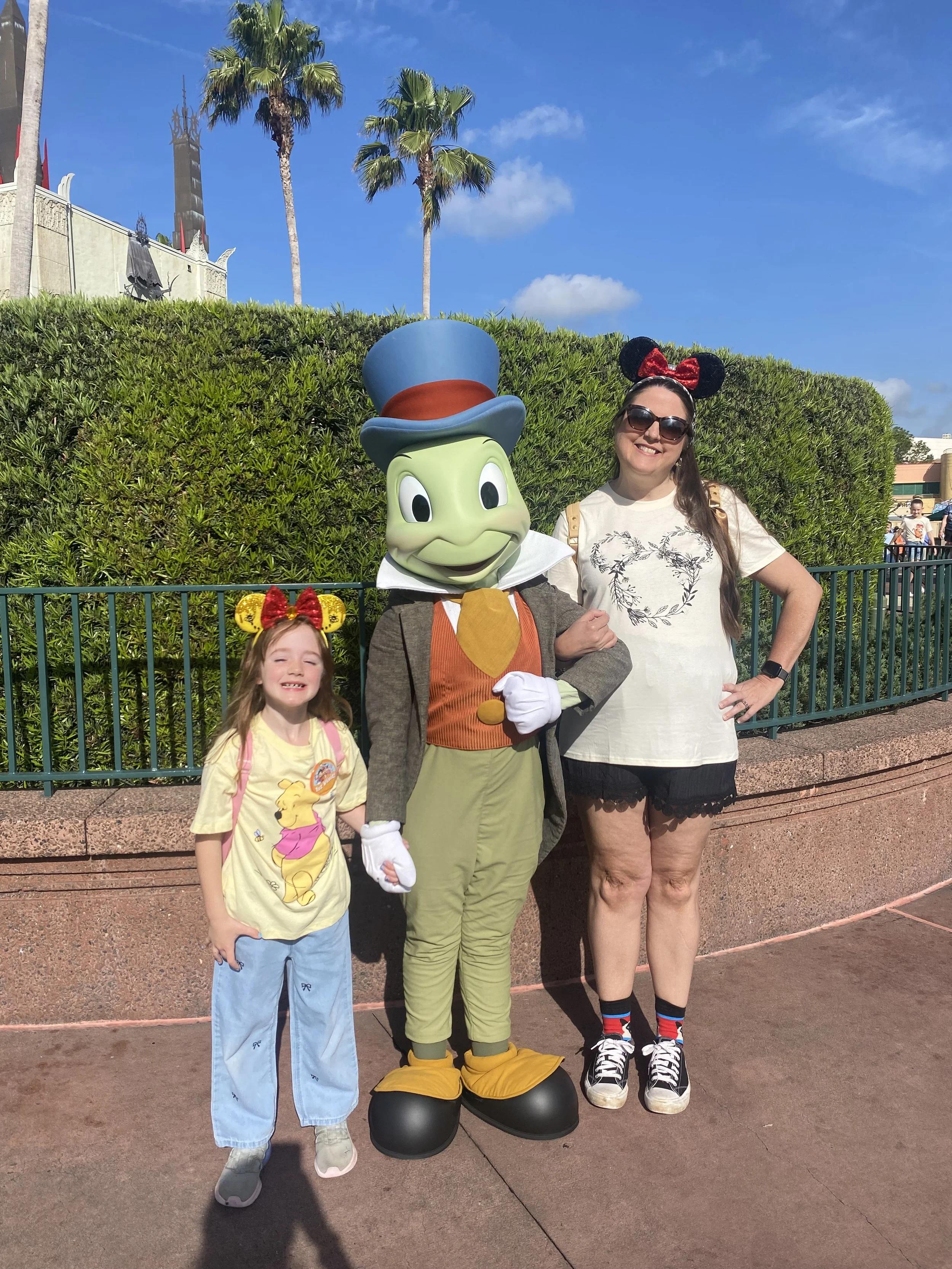 So, picking up where we left off… Wednesday was Hollywood Studios day. Phillip was exceptionally excited because of all the new Star Wars stuff. While Phillip rode Rise of the Resistance, Quinn and I took some time to get a Mickey Pretzel and have a meet and greet with Jiminy Cricket. She cracked me up when she said she didn’t mind a picture with him but didn’t think getting his autograph would be right since she didn’t know who he is really. Lol!!! We are failing our kids- time to stream Pinocchio!