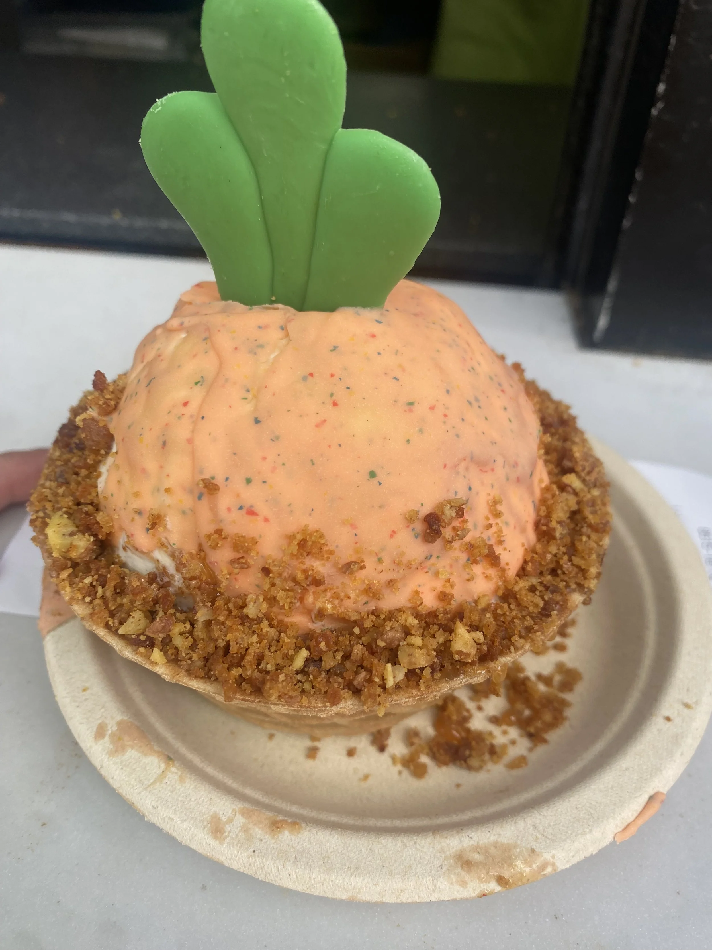 The red ribbon category would be those i consider either better than expected or great but not fabulous. Better than “good enough” and I would probably seek them out again. First up, the Cheshire Cat Tails from Cheshire Cat Cafe in MK- pleasantly surprised. It almost made the blue ribbon category. Corn dogs and homemade chips from Sleepy Hollow in MK- again, almost a blue ribbon especially since we were able to nab a table and chairs before the afternoon parade. Also in this category is the Woody’s Round Em Up Latte in HS and the Carrot Cake Ice Cream Sundae in AK. All in all- respectable choices I would likely get again.