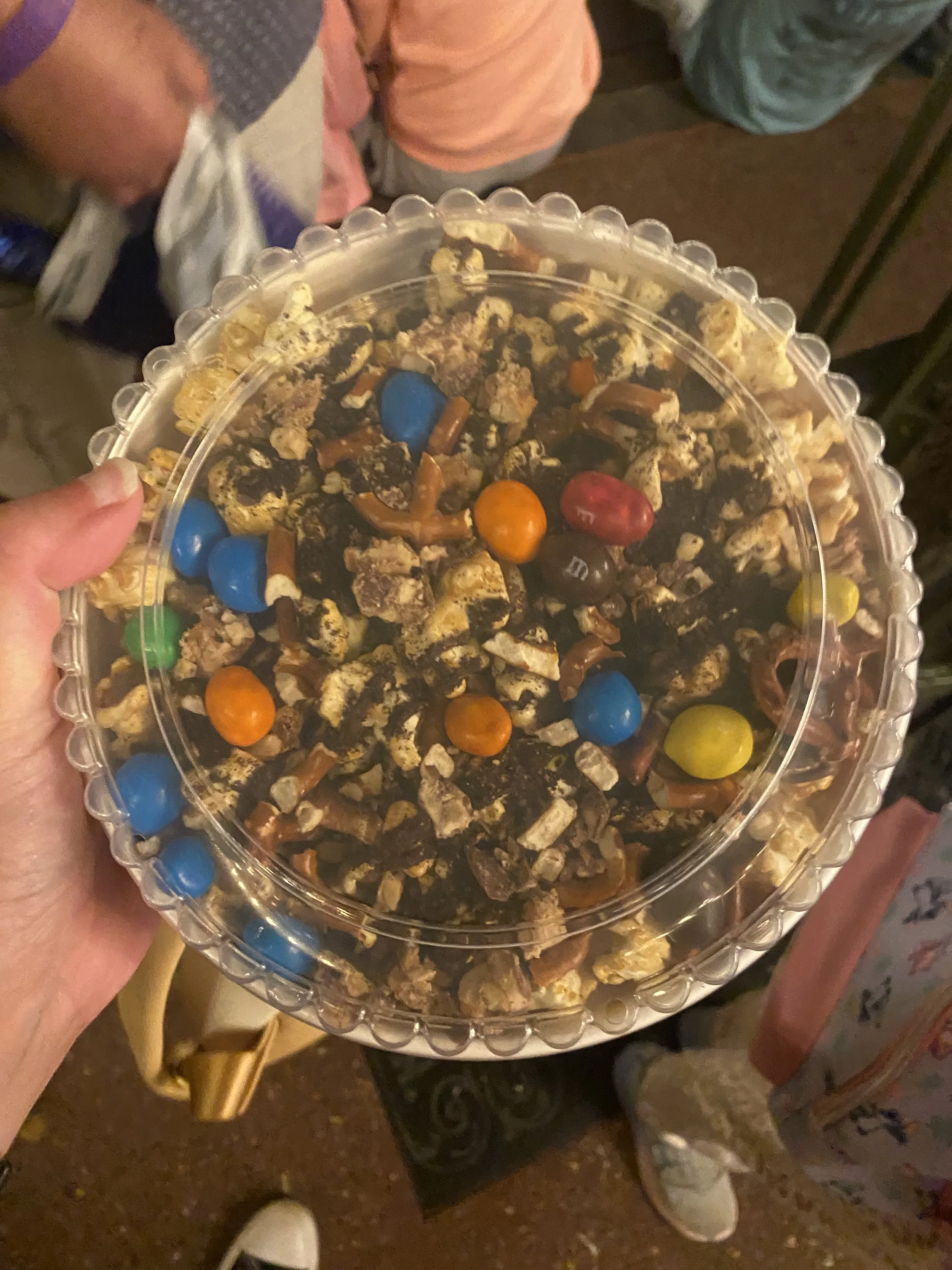 In the blue ribbon category- meaning the best of the best and the ones that I will definitely have again is the Fish n Chips from the UK in EPCOT. We dined waterside and Quinn had a great time watching the birds. This was probably our best food experience the whole trip. I will also give a blue ribbon to Sweet Willie Candied popcorn from the Main Street Confectionary in Magic Kingdom. Don’t look at the price- just get it and thank me later- it’s fabulous.
