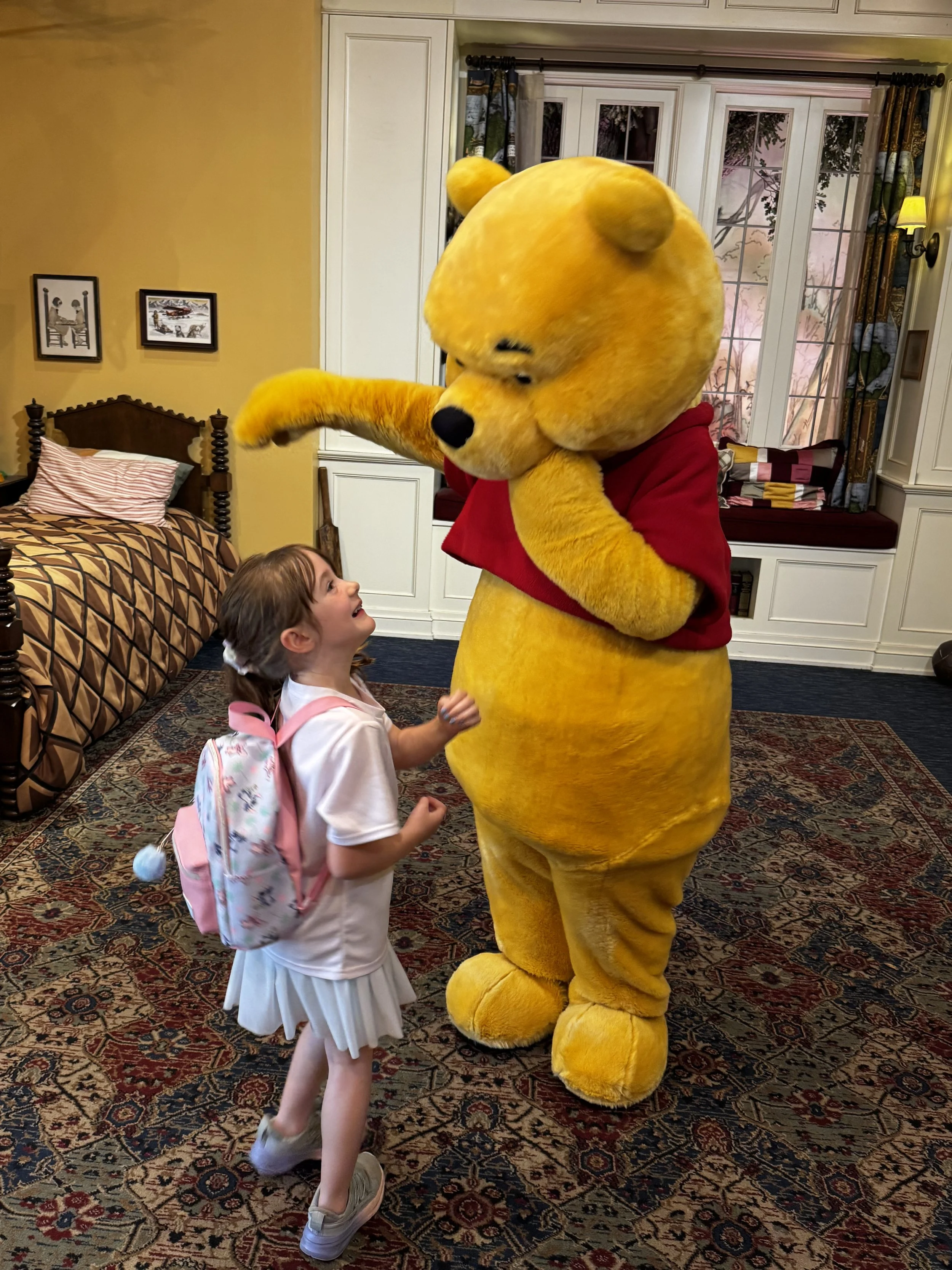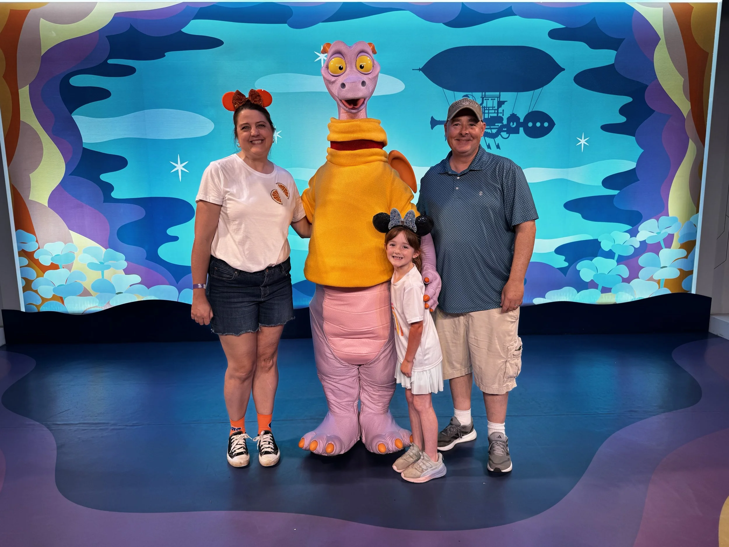 Tuesday was EPCOT and with the Flower and Garden Festival in full bloom this was my favorite park. Quinn met a ton of characters snd danced with Winnie the Pooh in his bedroom which melted my heart. We also met Figment and I had no idea he did meet and greets so this was super special. Quinn was a seasoned pro by day two so she hung in there like a champ. The older kids enjoyed the rides and special foods. We ended the day with dinner all together at Chefs de France. I had some great French onion soup and Autumn had ratatouille- lol.
